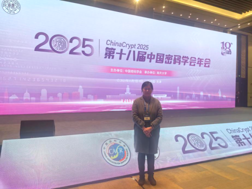 2025年11月7日至9日,2025第十八届中国密码学会年会(ChinaCrypt2025)在天津举行。会议由中国密码学会主办,南开大学承办。网络空间安全学院杨晓燕博士参加了本次会议。