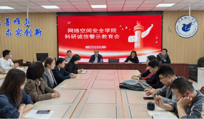 为深入落实学校科研诚信建设月工作部署,2026年4月23日,网络空间安全学院召开以“恪守科研诚信弘扬学术新风”为主题的科研诚信警示教育会。